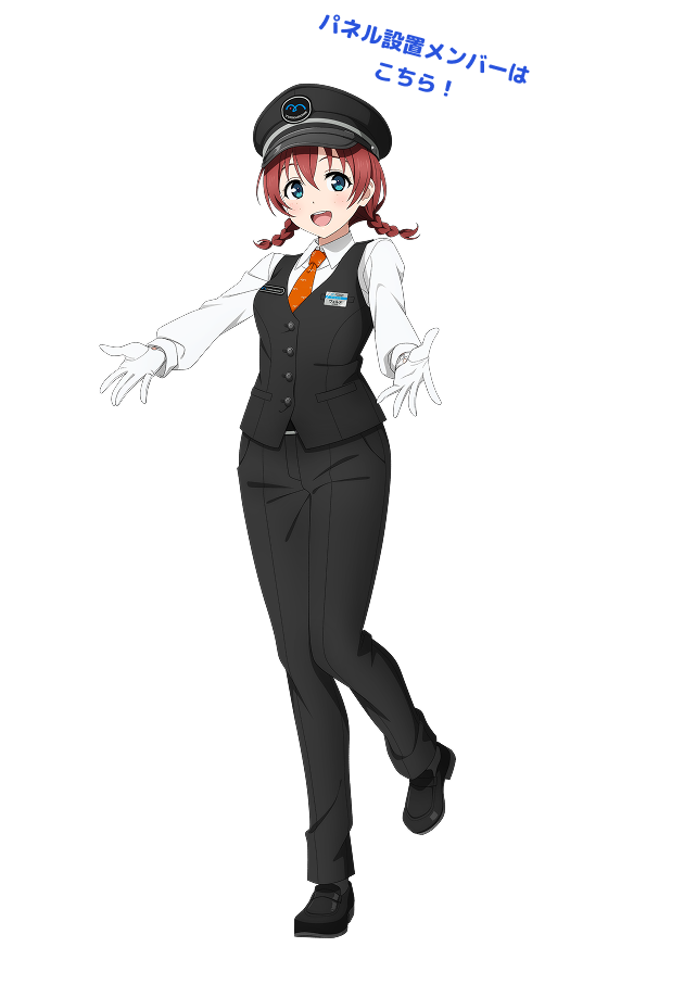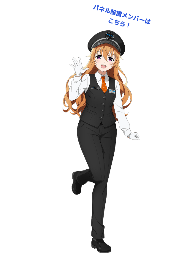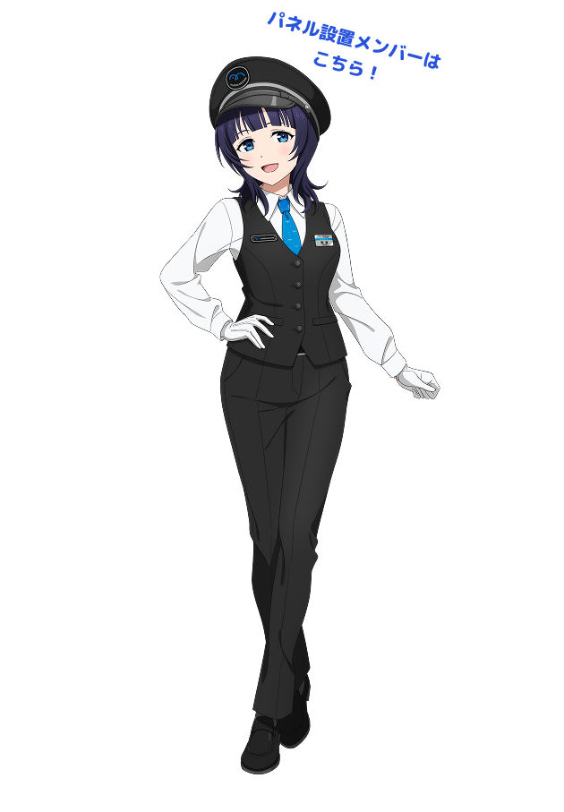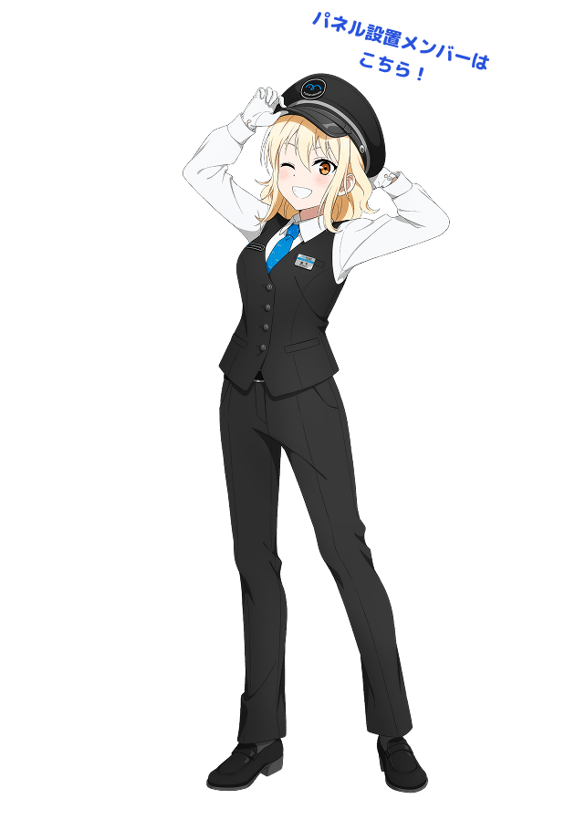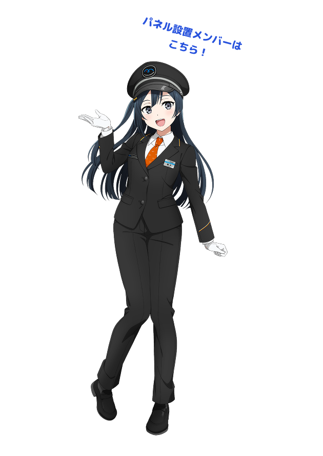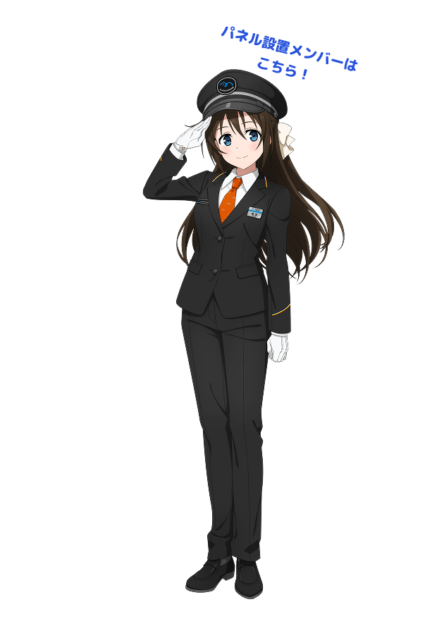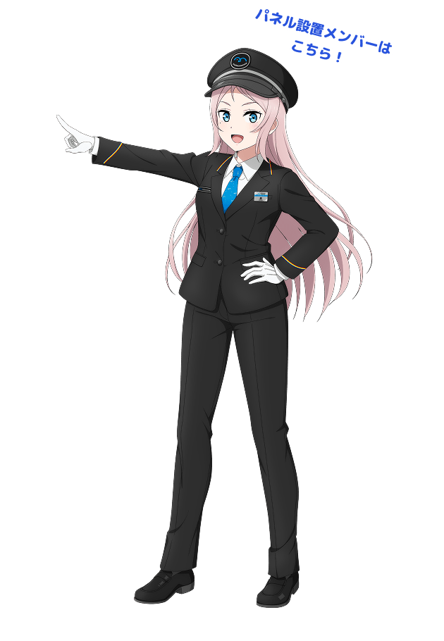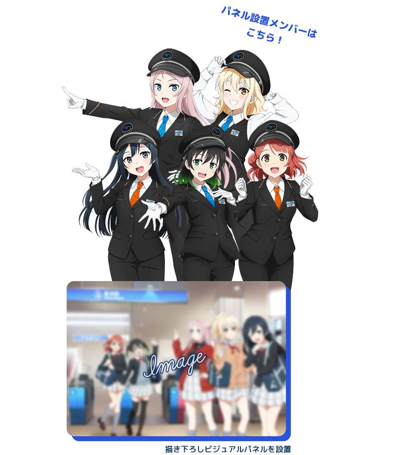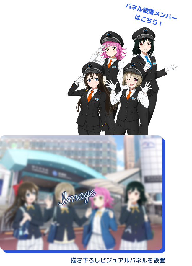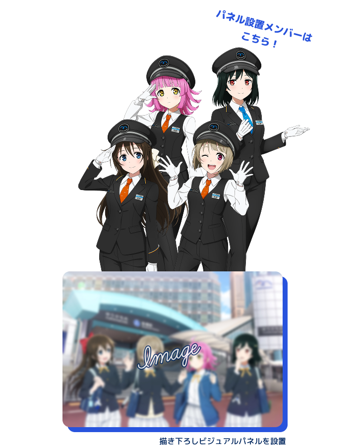 ゆりかもめ駅員の制服を着たメンバーの等身大パネルを設置します。